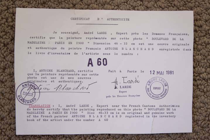 | Artists A-H > Blanchard Main Exhibit > Originals Gallery 1 > Boulevard De La Madeleine Paris 1900 |